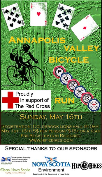 Hip-ebikes and it's partners are inviting you and your friends to help support the Red Cross at the 1st Annual Annapolis Valley Poker Run. See our website for Poker Run details and don't forget to pre-register online.
