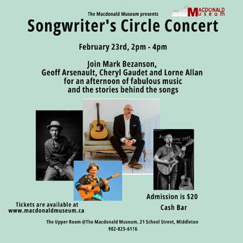 Join Mark Bezanson, Geoff Arsenault, Cheryl Gaudet and Lorne Allan for an afternoon of Songs & Stories