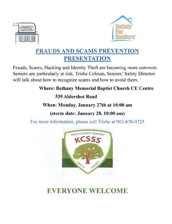 Join Trishe Coleman as she discusses Frauds and Scams that affect seniors. Light refreshments.