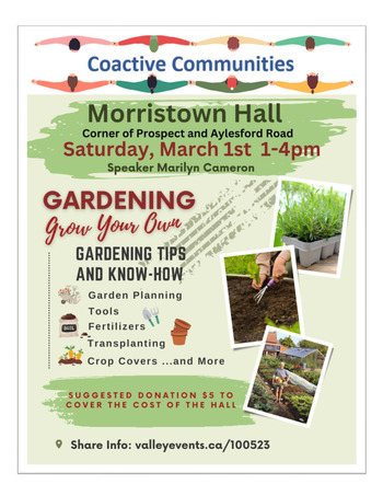 Gardening presentation by Marilyn Cameron (Hawthorne Hill Farm*). Including info about garden planning, tools, fertilizers, and cell pack planting, transplanting, cover crops and more. Questions and discussion to follow.