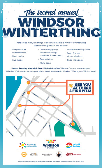 Join us in downtown Windsor for a winter day full of music, food & drink, demonstrations, face painting, a sunset drumming circle, games, and more . We will have four fire pits where you can roast marshmallows and as you stroll from site to site, pop in to our local shops to see what they have on offer.