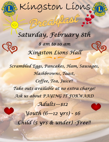 Come on out for our Big Breakfast and bring your 'Valentine"! Great meal, meet up with friends, stay for the conversation.