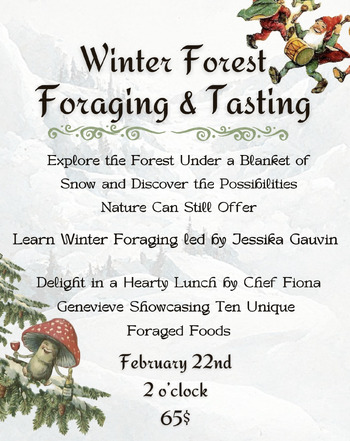 Delight in a hearty lunch by Chef Fiona Genevieve that will showcase ten unique foraged foods!