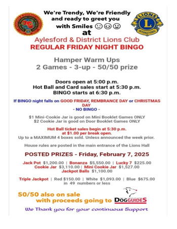 Hot Ball Sales @ 5:30pm ~ Card Sales @ 5:45pm