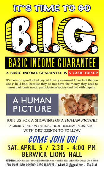 The idea of a Basic Income Guarantee (BIG) has been spreading in Nova Scotia & Canada. What is a BIG & what could it mean for you?