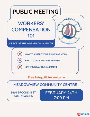 Join the Office of the Worker Counsellor for a presentation on workplace safety and the workers' compensation system. Learn what to do if you're injured, how to assert your rights at work to keep you and your coworkers safe, and how new policies may affect you.