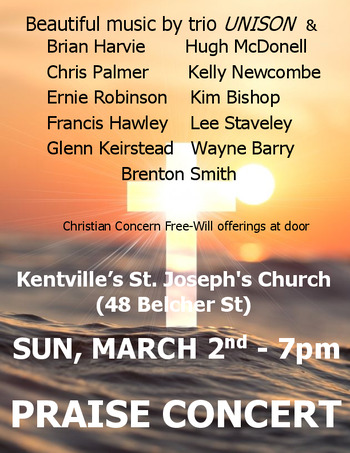 PRAISE CONCERT ~ 11 talented Music Ministers will inspire you, each performing 2 of their favourite Christian pieces!