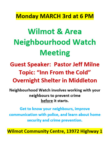 Topic: “Inn From the Cold” Overnight Shelter in Middleton