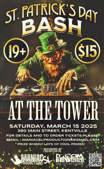 St. Paddy’s Day Bash. Party starts at 8pm. PRIZE AWARDS. Costumes.