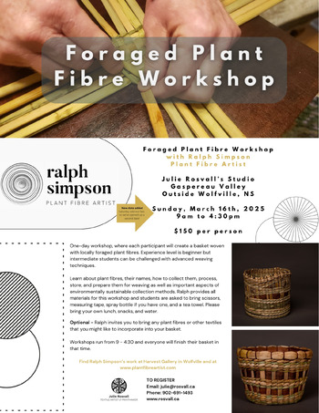 Find @ralphasimpson’s work at @harvestgalleryns in @townofwolfville and at www.plantfibreartist.com