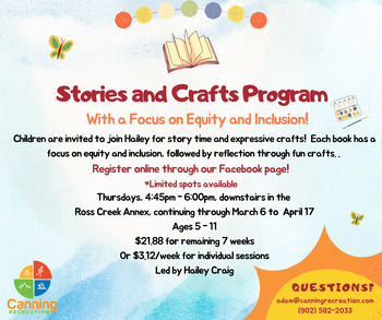 Children aged 5-11 are invited to join Hailey, for cozy story time and expressive crafts! Hailey will be reading from a series of children’s books that celebrate equity and inclusion, followed by reflection through fun crafts. This program will continue until April 17.