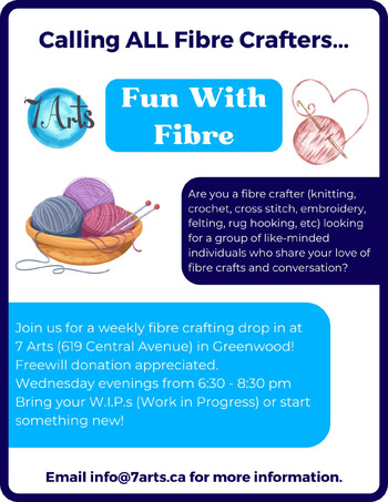 Drop-in Fibre Crafting Group. For ALL fibre crafters (knitting, crochet, cross stitch, embroidery, felting, rug hooking, etc) looking for a community to craft and chat with!