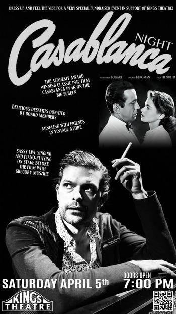 About the live on stage portion of the night: Before the film begins, step into the world of 1942 with your musical host, Gregory Muszkie, who will take us on a lively and immersive journey exploring the timeless soundscape of Casablanca—from the jazz-infused rhythms of the era to the nostalgic power of As Time Goes By. Through music, humour, and history, we’ll dive into how film scores shaped emotions, how jazz defined Hollywood, and why nostalgia makes certain songs feel like they’ve always been with us. Whether you’ve seen Casablanca a dozen times or have never seen it at all, Gregory’s mini-show promises to enrich your experience with laughter, insight—and of course, music!