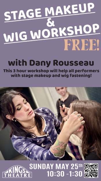 This workshop was developed with the aim of enhancing theatre skills for performers of all ages. Often, being tasked with having to put on one’s own stage makeup can lead to anxiety before a performance, especially if a person is not used to applying or wearing makeup. Add a wig into the mix, and a few poorly placed bobby pins, and now anxiety has to contend with a headache — and it’s almost curtain call! In this three-hour session, Dany Rousseau covers basic stage makeup application and wig fastening for all performers.