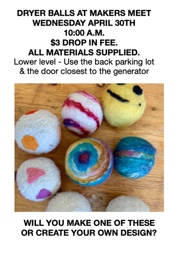 Optional activity for Apr 30th - Make your own dryer balls. No extra cost. Materials supplied.