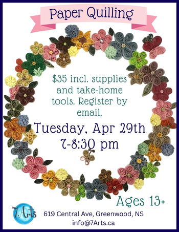 Join us as artist Christine teaches us paper quilling techniques to make your own piece! This workshop is for ages 13+. All skill levels welcome. This workshop includes a take-home tool kit to continue paper quilling at home. Space is limited! Register by email.