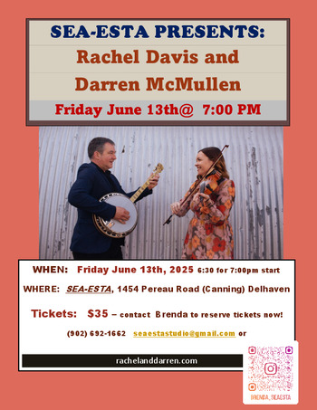 Rachel Davis and Darren McMullen’s debut duo album, Home, was released on May 3rd 2024, and has recently won the 2024 Music Nova Scotia Award for Traditional Recording of the Year. Home has also been nominated for two 2025 Canadian Folk Music Awards - Ensemble of the Year + New/Emerging Artist of the Year.