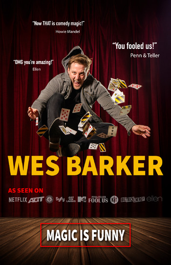 Wes Barker is the funniest magician touring today! Wild tricks, hilarious stories, incredible feats, and amazing antics. He’s a magician like you’ve never experienced. You may recognize Wes from his TV show (Big Trick Energy) or other appearances on America’s Got Talent, Ellen, Syfy, MTV, and Penn & Teller: Fool Us (which he won). Wes also has numerous viral videos which have gained over a billion views across the internet!