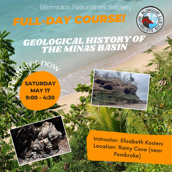 Course fee is due by Sunday, May 10. Payments can be made by e-transfer ([email protected]) or by cheque (Blomidon Naturalists Society). Please reference 'Geological History' in the subject line.