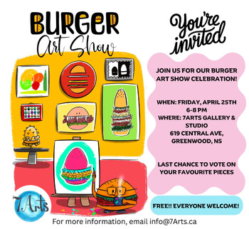 Join us for our Burger Wars Art Show celebration! Check out the unique art pieces featured in the gallery and vote on your favourites. We will also have live music by local musician Maura Edmunds.