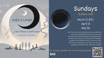 A guided group body care ritual for women, non-binary, and femmes. This session includes a nourishing steam experience as part of our Wellness Circle of Care pilot.