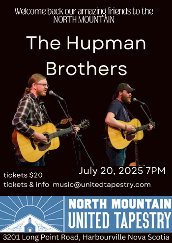 Come and welcome back our friends to the North Mountain. Scott and Ryan Hupman will fill your ears with the best music and your hearts will thank you. These guys play from their souls . Brothers by birth , they have been playing music together all of their lives. Blues and rootsy folk with a nod to rag time and swing. They have an infectious joy that will pull you in.