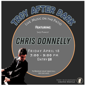 Join us for an unforgettable evening of live jazz with Chris Donnelly, a multi-award-nominated pianist and composer who recently made Nova Scotia his home. Best known for his work with the internationally acclaimed group Myriad3, Chris continues to push the boundaries of jazz composition and improvisation.