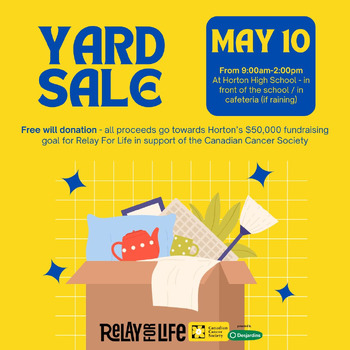 It's free will donation and all proceeds support Horton's $50,000 Relay For Life goal for the Canadian Cancer Society.
