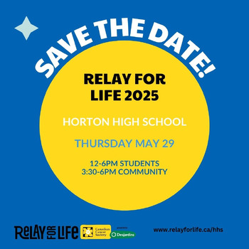 The Relay for Life committee at Horton High School is excited to invite you to participate in this year’s event for community members (12:00 PM - 6:00 PM for students).