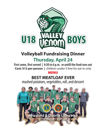ALL Profits goes to U18 Valley Venom Boys Team that are going to Edmonton to compete in the Nationals.