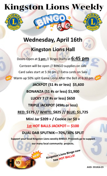 Card prices vary with games being played. Canteen on site. Bingo supplies available for purchase. 50/50 tickets on sale.