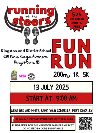 Join the fun in Kingston for the third annual Running of the Steers! This event is a fundraiser for the Kingston Farmers Market and is part of Kingston's Steer BBQ festivities. There are classes for all ages, including a FREE 200m children's race. Spectators and runners alike can come meet Kingsley, wear your red and white just as they do in Pamplona, and bring your cowbells. Fun for the whole family!