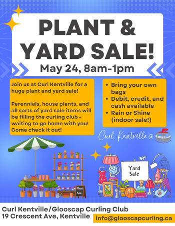 Join us at Curl Kentville (Glooscap Curling Club) for a huge plant and yard sale!