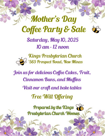 Join us for delicious coffee cakes, fruit, cinnamon buns and muffins. Craft and bake tables.