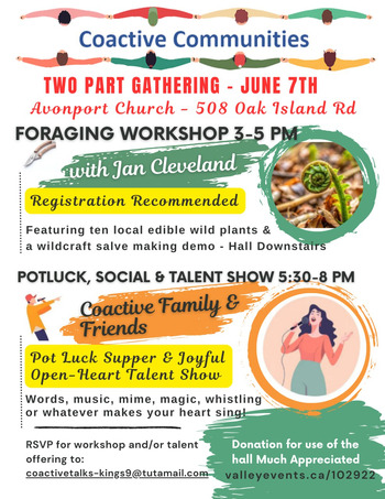 Part Two: 5:30-8 pm: Family & Friends Coactive Pot Luck Supper & Joyful Open-Heart Talent Show Featuring Words, Music, Mime, Magic, Whistling or Whatever Makes your Heart Sing! Volunteer Ahead; or take your chances on the spot.