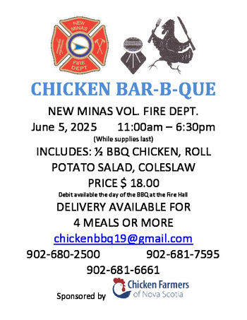 Where to buy Tickets: New Minas Fire Hall, most members have tickets, by phone or email