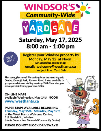 Find GREAT treasures at Windsor's Community-wide Yard Sale. Enjoy your day in West Hants. Something Inspiring Awaits!