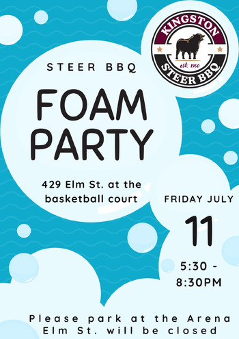 All ages event, come have fun in the foam! Please bring towels. There will be BBQ on site by Sole Expression Dance group. Music with Magic and AVR, Lawn games, Kiddie Train with the Kingston Lions and shaved ice available!