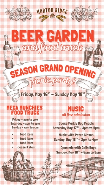 Join us for a picnic party to celebrate the season grand opening of our Beer Garden and Mega Munchies Food Truck!