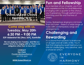 We sing every Tuesday, which is the perfect time to try singing with us. There is no obligation other than to have fun!