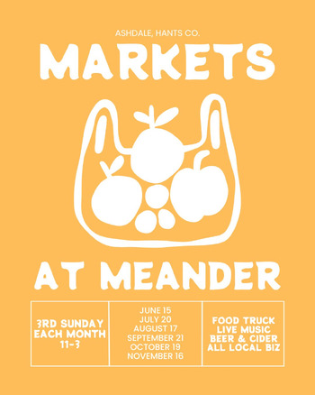 Shop and support small, local businesses at our seasonal outdoor Markets at Meander! Craft beer, cider, farmers, artisans, bakers, food truck, and live music make this event at Meander River Farm & Brewery one you won’t want to miss.
