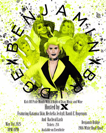 Come join X in kicking off International Pride Month with Benjamin Bridge! Taking place in the beautiful winery region in Nova Scotia, enjoy an exciting show while you sip away at some of Benjamin Bridges' delicious wine and cocktails.