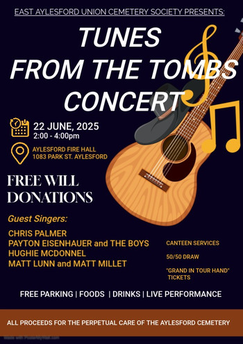 Fundraiser Concert to raise money to help care for the Aylesford East Union Cemetery