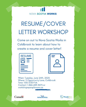 In this workshop, you will learn how to create an effective resume by exploring how your skills and qualifications can be presented, various resume formats and templates, Nova Scotia Works Online and more. You will also learn about cover letters which provide an opportunity to make a pitch to a specific job. We will discuss different types of cover letters, format, submitted electronically, and some samples.