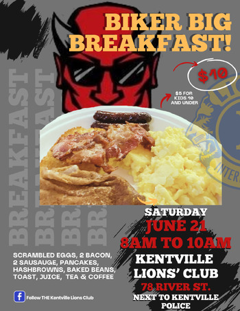 Start your Devil's Half Acre Motorcycle Rally with a Lion's BIG BREAKFAST. Scrambled eggs, bacon, sausage, pancakes, hashbrowns, baked beans, toast, juice, tea & coffee. Roar like a Lion with a good breakfast in your tummy!