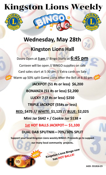 Card prices vary with game being played. Canteen on site. Bingo supplies available for purchase. 50/50 tickets on sale.