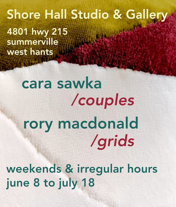 Artists Cara Sawka and Rory MacDonald of Shore Hall Studio & Gallery are displaying a selection of art exhibited for the first time from the archives, and hot out of the kiln. "Couples" sculpture by Sawka, and "Grids" ceramic sculpture by MacDonald.