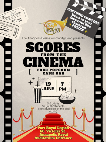 The Annapolis Basin Community Band is hosting a movie-themed summer concert, complete with a costume contest, free popcorn and themed drinks available at the bar.