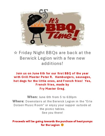 Friday Night BBQs are back at the Berwick Legion with a few new additions!