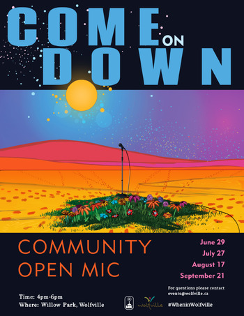 Come On Down is Wolfville’s community open mic—welcoming anyone and everyone to share their voice. Whether you’re reading a poem for the first time, strumming a new song, telling a story, or making it up as you go, Come On Down is a space to express yourself in a relaxed and encouraging environment. Hosted by local poet J.G. Lutes, the event is all about participation, connection, and creativity.